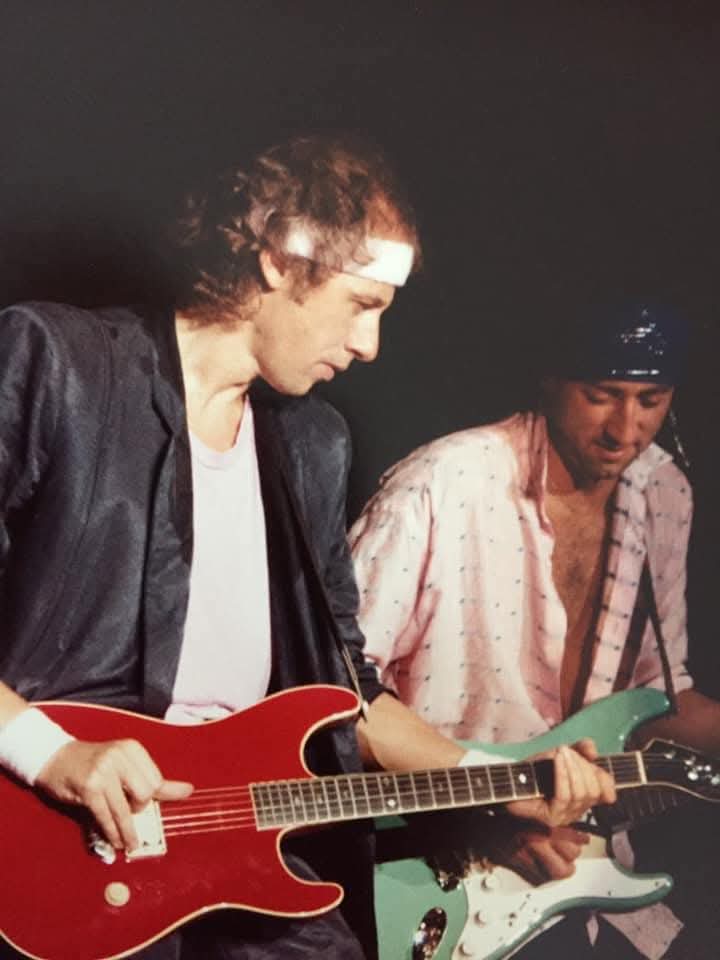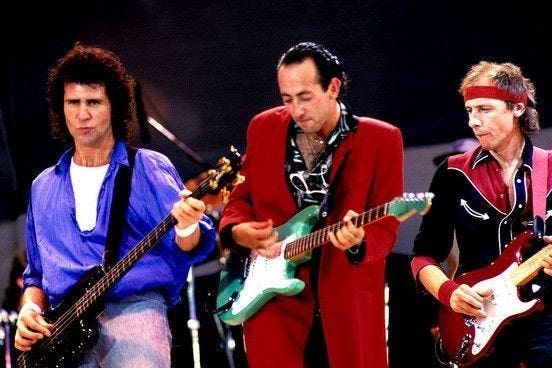 Provenant directement de la collection de Jack Sonni, cette Schecter de type Stratocaster en finition Seafoam Green de 1983 constitue un jalon majeur de l’épopée Dire Straits. Cet instrument a accompagné Sonni sur les scènes mondiales, s’imposant comme l’un de ses outils de prédilection lors de la tournée historique Brothers in Arms et brillant particulièrement sous les projecteurs du Live Aid le 13 juillet 1985. L’histoire de cette guitare s’entremêle étroitement avec celle de Mark Knopfler : selon les souvenirs de Jack Sonni, c’est sur ce modèle précis que Knopfler a gravé le solo de « One World » pour l’album culte du groupe. Le leader de Dire Straits l’avait également étrennée sur scène à New York dès 1983 aux côtés de Sonni. Véritable relique du rock britannique, cette pièce unique incarne l’âge d’or d’une formation de légende et la complicité entre deux musiciens d’exception.